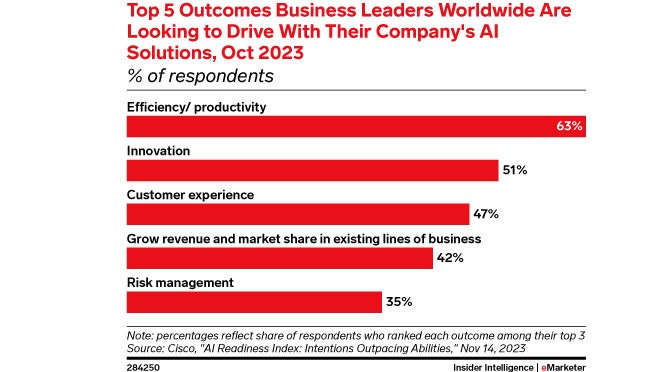 Not surprisingly, the number one use or value that business leaders are attributing AI to is increasing efficiencies and productivity.