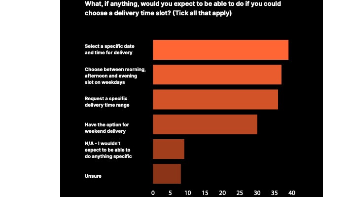 - 39% would like to be able to select specific date and time for delivery